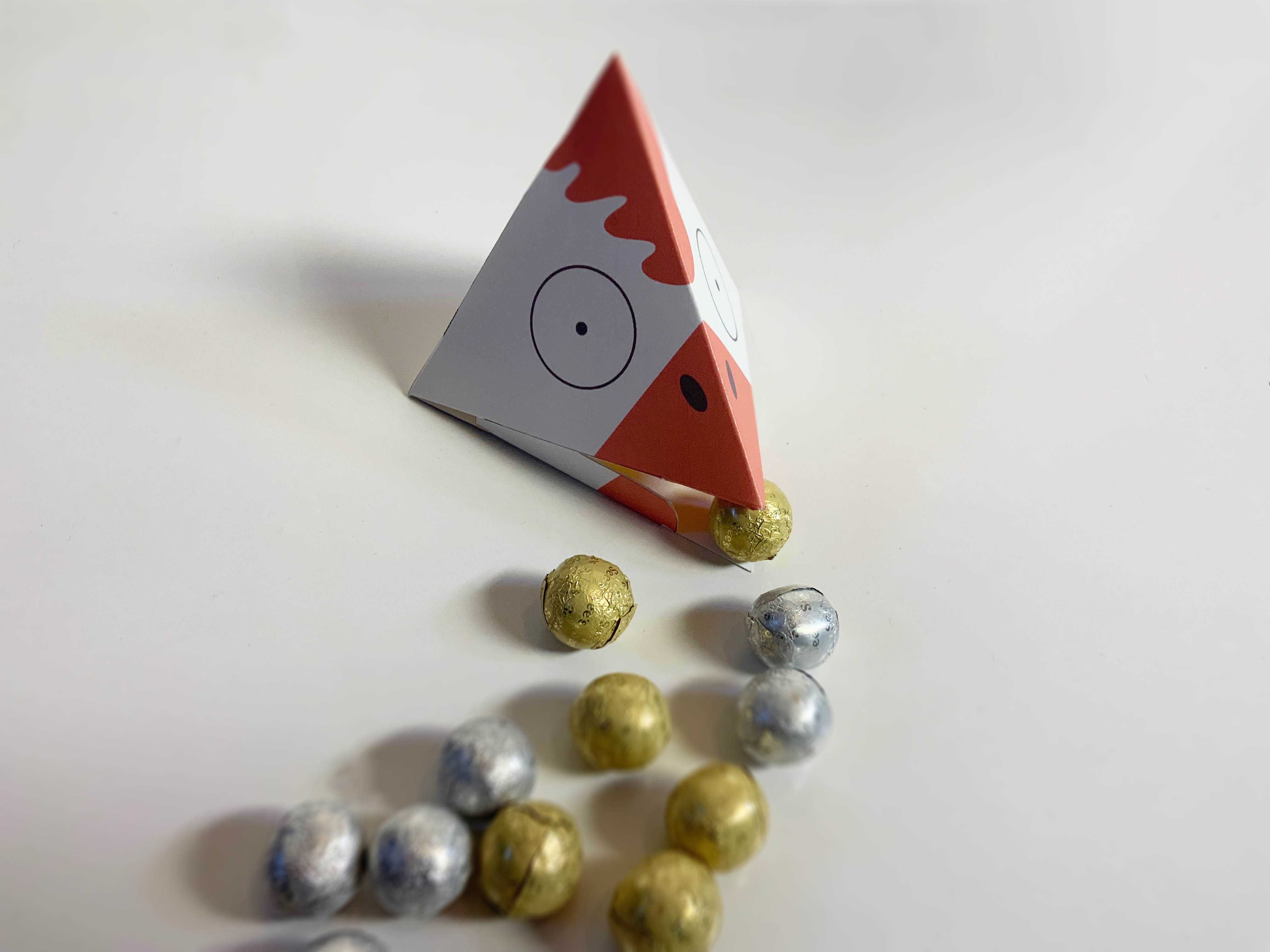 Had some fun thinking about a novel idea on how to package chocolate eggs and ended up mapping a cartoon chicken on a tetrahedron.