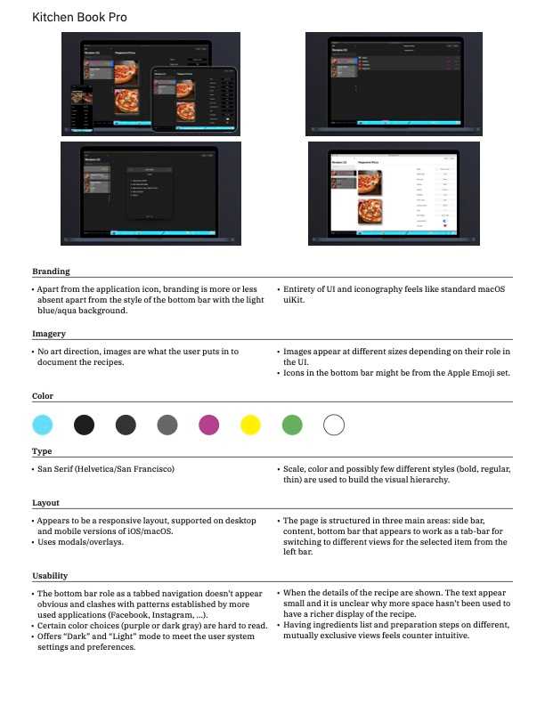 The sole and primary goal of the product is to help people to learn how to cook. There is no feature associated with Social Media because the social element is the cooking with/for someone else and the physical sharing of food, not the sharing of non fungible digital pictures of food. The target persona shunning social media calls for the product to be intentionally different from social media platforms. The persona relative wealth and appreciation for fine things calls for the application to have a feeling akin a coffee table book: white space, and “modern clean” are also some of the feelings from the persona's associated brands.