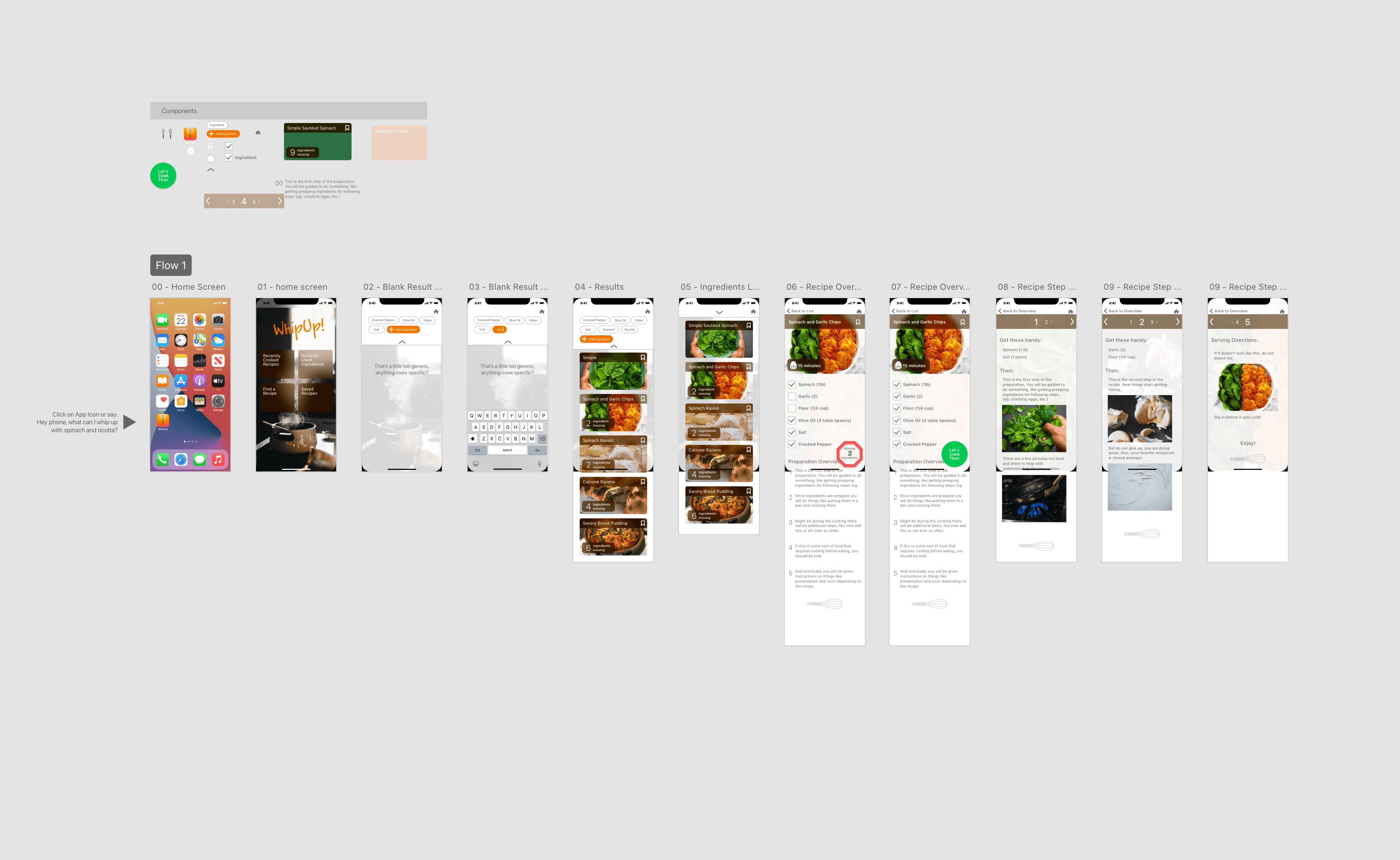Luigi reaches to his iPhone and while looking at what is in the fridge he asks “Hey Siri, what can I whipUp! with spinach and onions?”